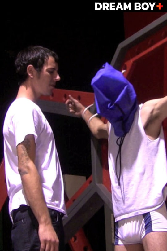 Ben, a former boyfriend of Jacob, becomes jealous as Jacob takes a new lover, forcing Ben to act on impulse and tie him up for punishment. Ben removing the bag from his bound friend's head while roped to the octagon, Jacob realizes the nature of the situation, quickly stating "Brock is more of a man than you will ever be!" to his new Master. Ben does not take too kind to these words, proceeding quickly to molesting his former fuck buddy, stripping him down slowly. Master Ben grabs a crop to start things off, whipping his bitch mate up and down his exposed frame. Jacob will think twice before crossing a former lover ever again. Next Week: Whipping and sucking...